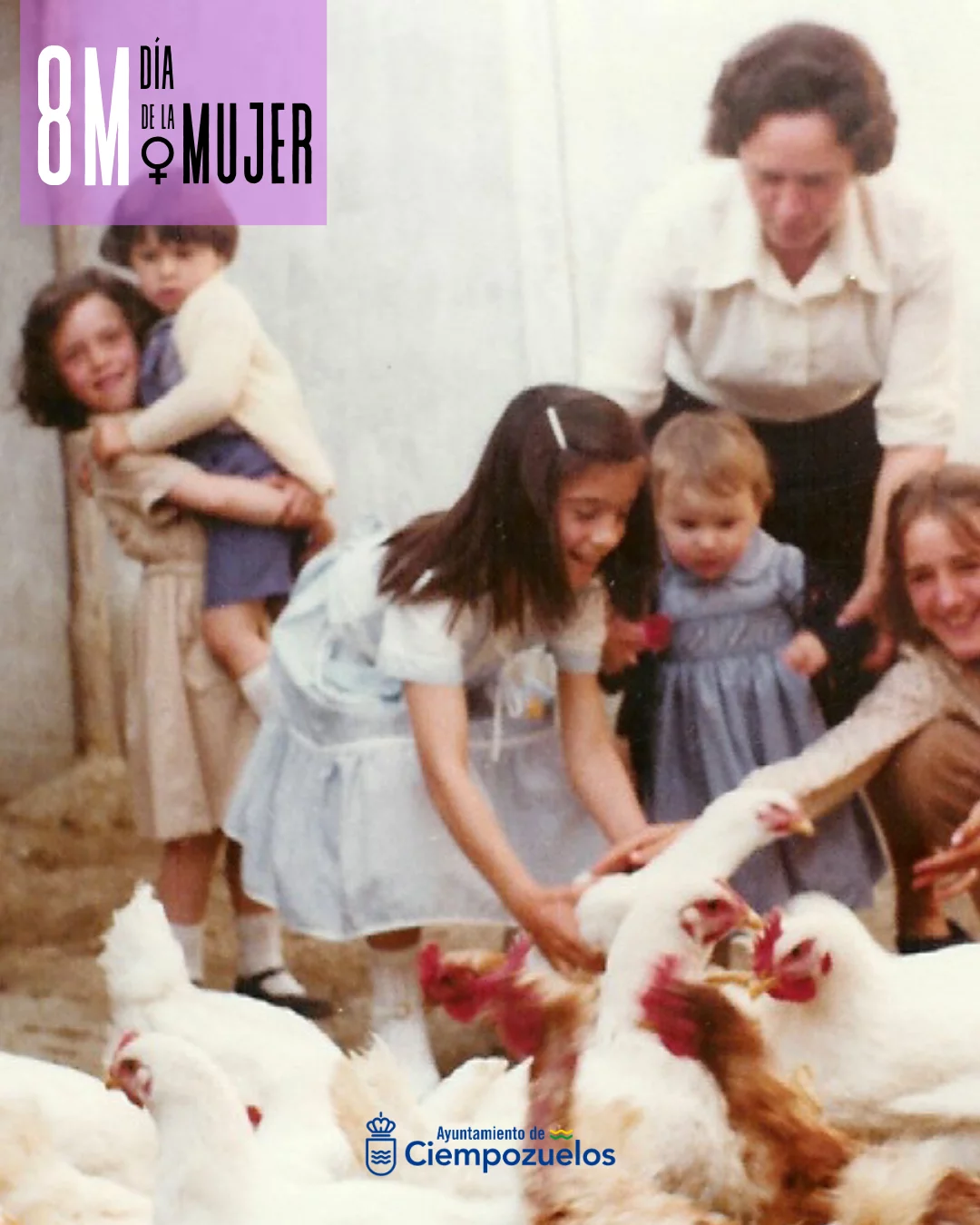La jornada concluirá con el tradicional concierto de la Banda de Música de Ciempozuelos, a las 19.00 h en la Sala Multifuncional. Además, Igualdad donará juegos de mesa a los cuatro colegios públicos y colocará roll ups en sus entradas con historias de grandes mujeres españolas. Comercio repartirá cartelería conmemorativa y Comunicación repetirá la campaña ‘8M, 8Mujeres’, con biografías de vecinas. El cartel del 8M 2026 rescata una imagen del Archivo Municipal, de autoría desconocida, donde se ve a varias generaciones alimentando a las gallinas entre los años setenta y ochenta.